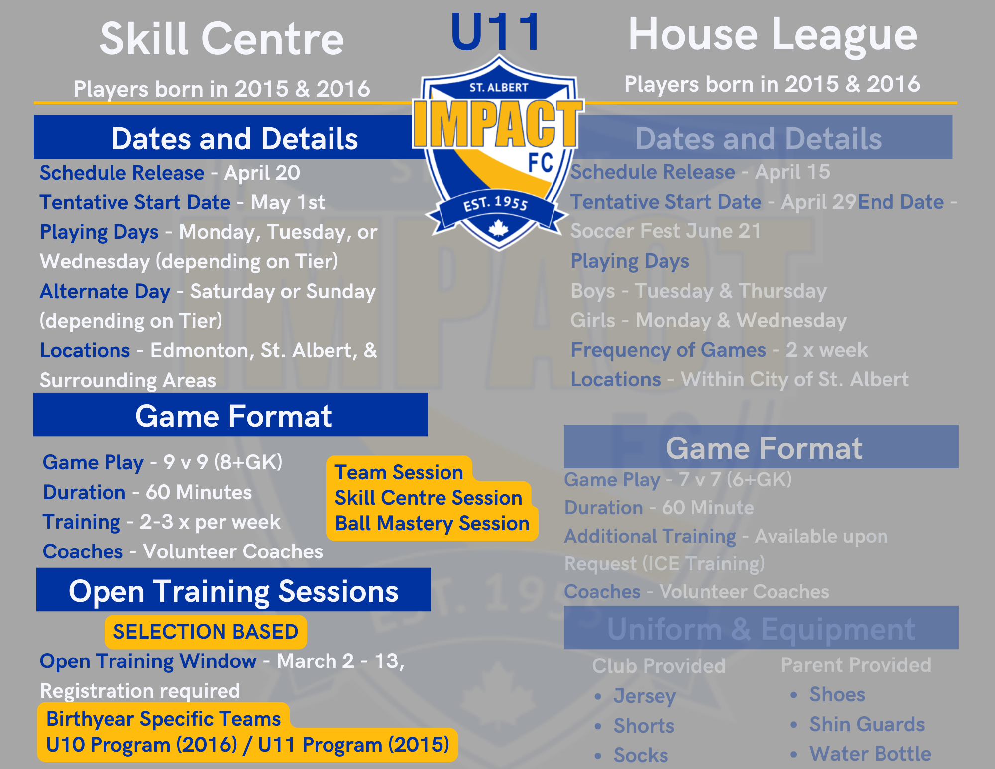 House League and Open Training Registrations opens on February 2nd