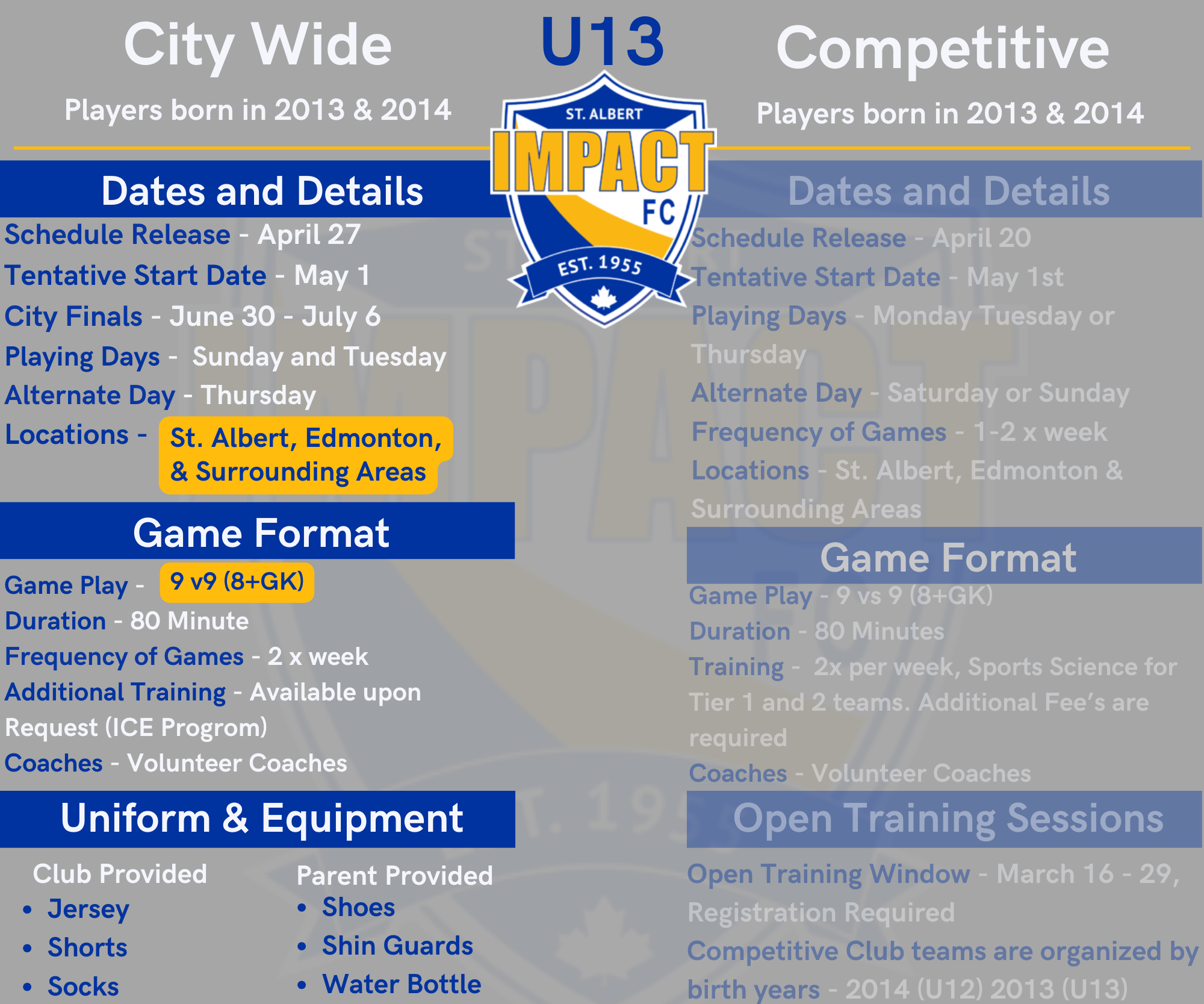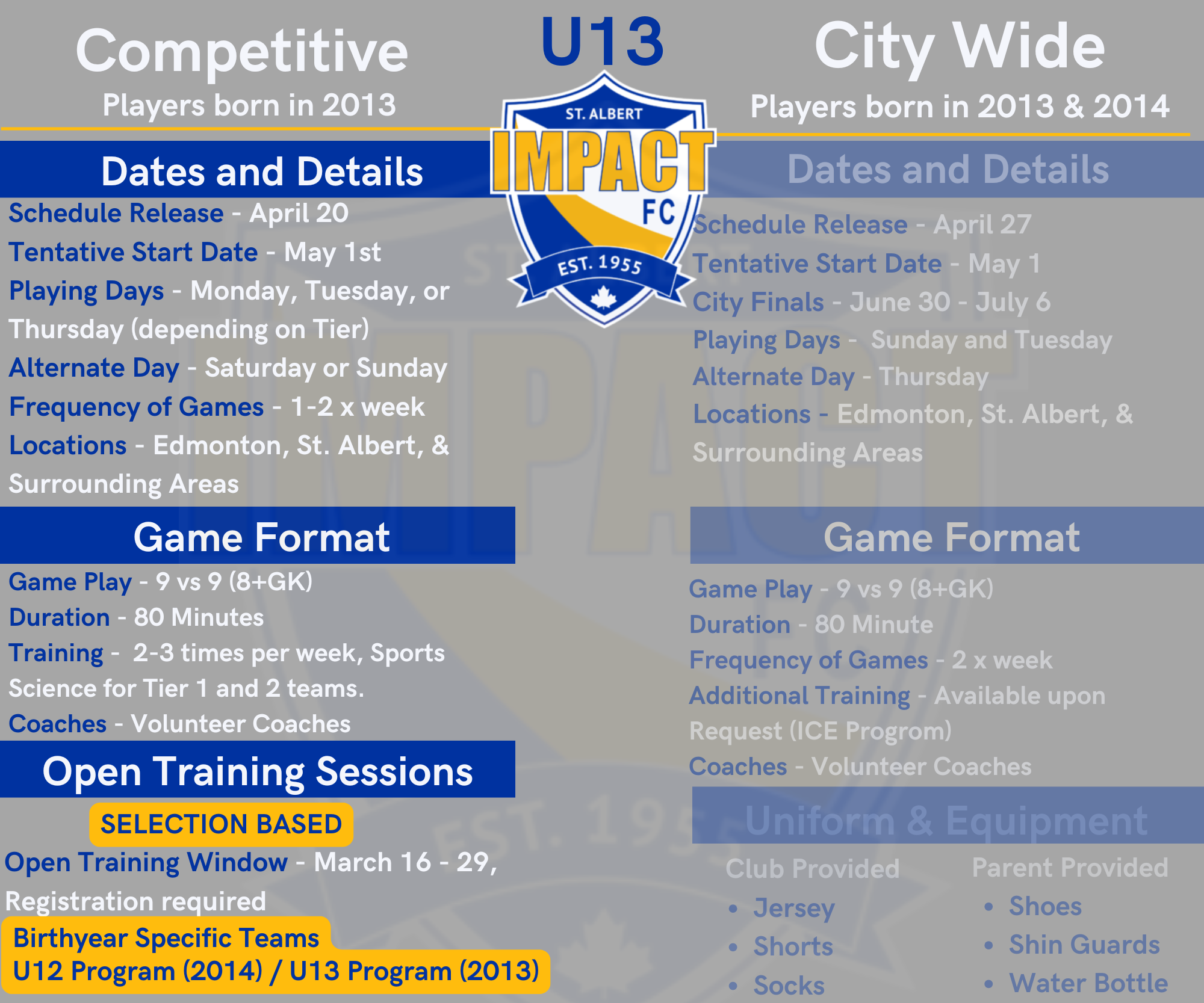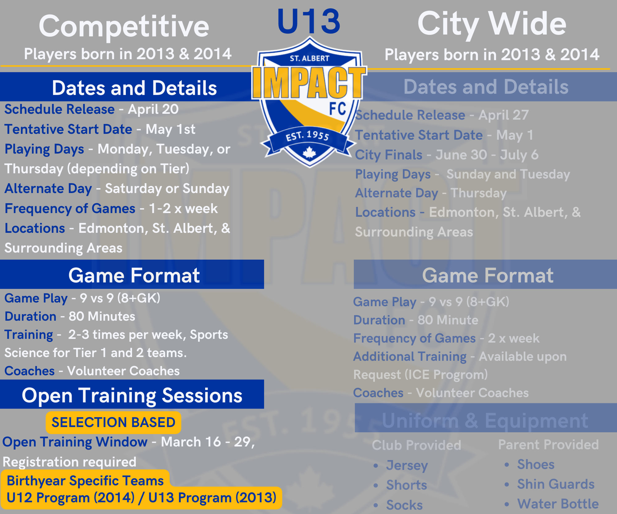 Note: Players must attend am Open Training session to be placed on a Tier 1 - 3 team.